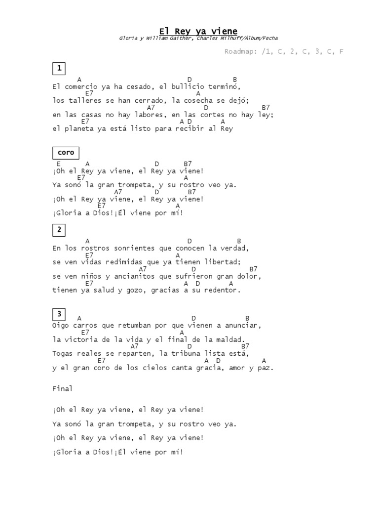 El rey ya viene himno. Los aviones van sin rumbo y no hay nadie en el control. El rey ya viene ya se escuchan las trompetas y su rostro veo ya el rey ya viene. //el rey ya viene// yo oí la gran trompeta y su rostro yo veré //el rey ya viene// jesucristo ya viene por mí.