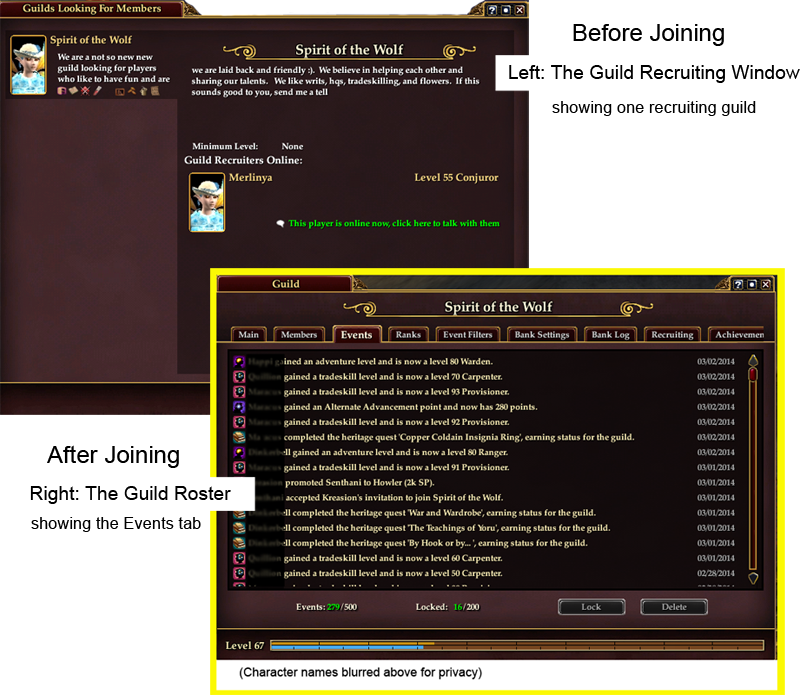 While any member of associate rank or higher may advertise for the guild, only a member who's achieved the guild rank of guild recruiter may issue an invitation to join the guild. You'll gain an additional row of 10 slots in each tab at guild levels 10, 20, 30, 40, 50, 60 and 80. I was playing everquest ii yesterday, just pottering around in a sundayish fashion, sorting bags and trying to keep everyone's upgrade plates spinning, when i happened to look at the guild bank.