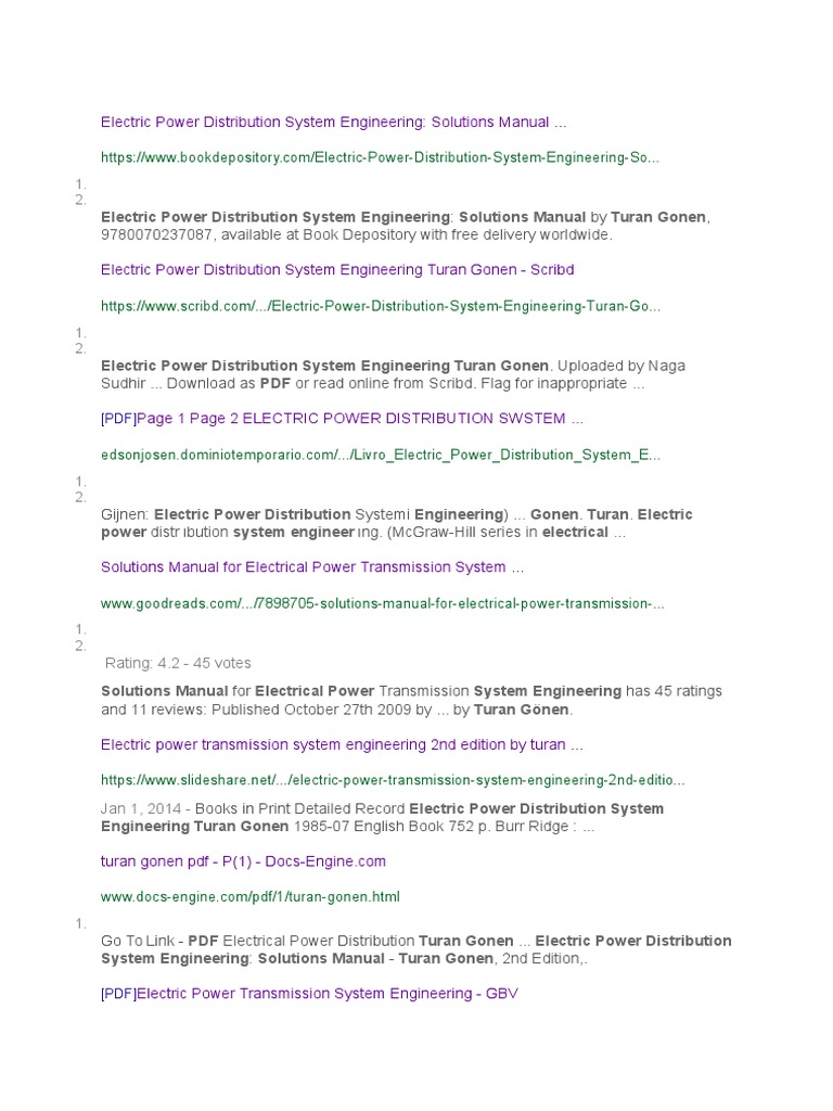 Electric Power Distribution System Engineering Turan Gonen Solution Manual Pdf - A quick scan of any bookstore, library, or online bookseller will produce a multitude of books covering power systems. Author (s) electric power distribution.