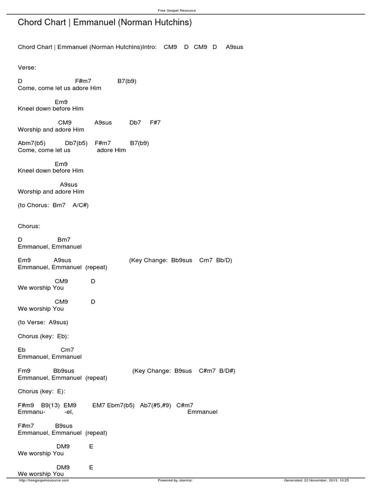 Download the pdf chord charts for emmanuel by norman hutchins, from the album emmanuel: Version of this file : With vocal melody, piano accompaniment, lyrics and chord names.